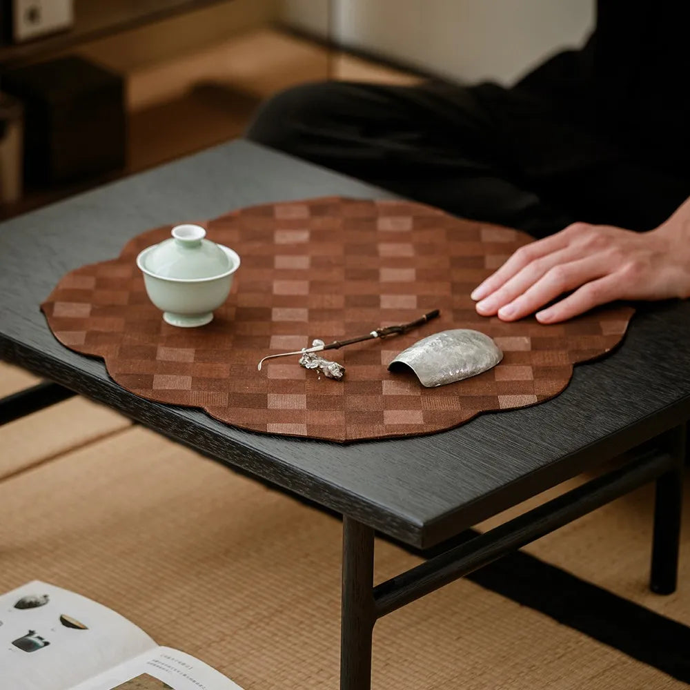 The Vintage Chinese Double-Sided Square Tea and Cup Mat (Gambiered Canton Gauze ) brings an elegant blend of tradition and luxury to your tea ritual. Handwoven from the same refined Gambiered Canton Gauze (65% silk, 35% cotton), its square form features a classic Gambiered Canton Gauze weave pattern—an homage to ancient Chinese textile artistry. The fabric’s gentle silk gloss and tightly woven cotton core ensure both a sumptuous hand-feel and durable resilience. Colors remain vibrant yet muted thanks to natural plant dyes, giving the mat an understated palette that complements modern interiors.
