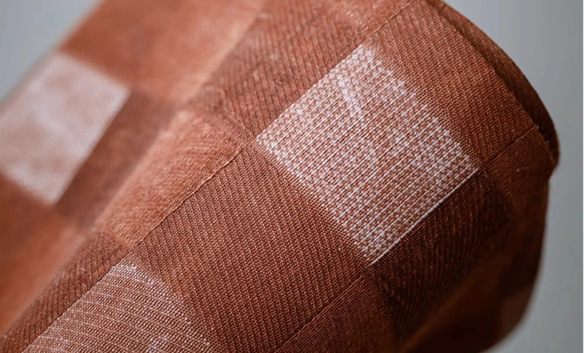 Artisanal Baoxiang Weave: Showcases a traditional Gambiered Canton Gauze pattern in a handwoven plaid motif, reflecting rich Chinese craftsmanship in every thread.